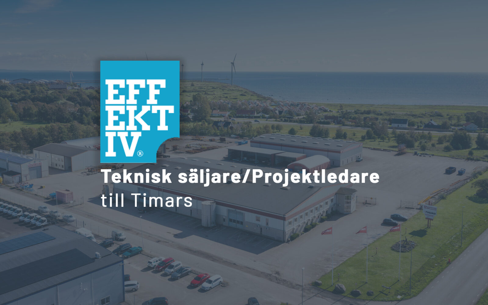 I denna rekrytering samarbetar vi med Effektiv. Låter jobbet intressant? Läs mer och ansök via Effektiv: Teknisk säljare/Projektledare till Timars | Effektiv – för vinnare i arbetslivet